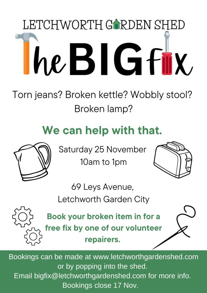 As a volunteer with Letchworth Garden Shed, I am developing and delivering a series of sewing workshops to help the local community develop skills that enable more sustainable living.